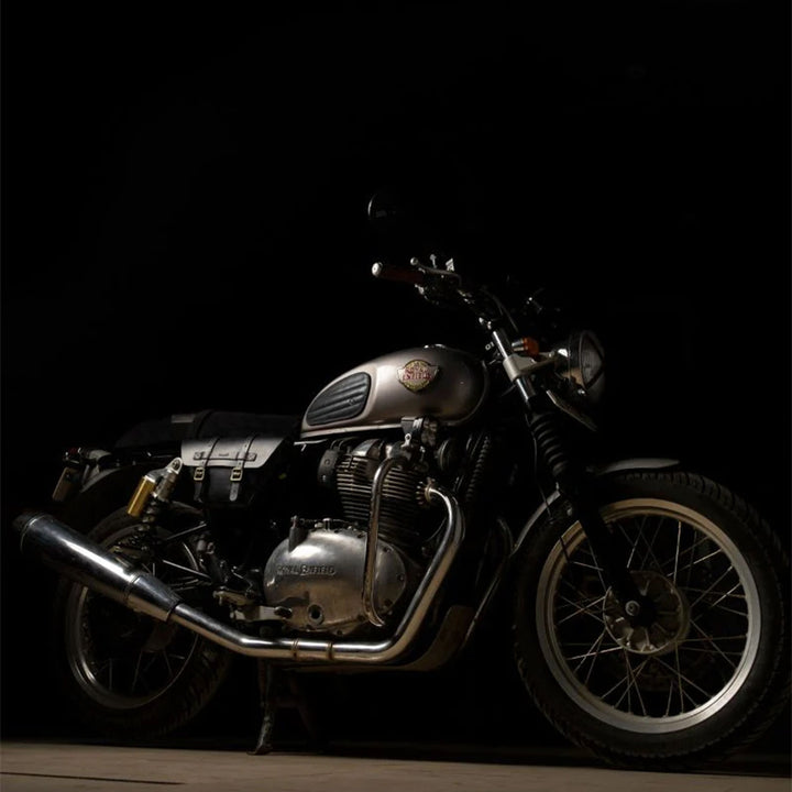 Erleben Sie die ultimative Form des Reisens mit dem Trip Machine Wingman Side Panel. Entworfen in Zusammenarbeit mit mk designs, ist der Wingman Ihr treuer Begleiter. Gefertigt, um die langweiligen Seitenpaneele des Royal Enfield Twins mit einem funktionaleren Gepäcksystem zu ersetzen. Die Tasche fügt sich perfekt in den Look des 650er ein, sodass das Bike so aussieht, als sei es gerade erst aus der Fabrik gekommen.
